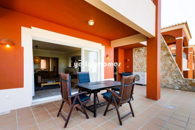 Geräumiges und komfortables Apartment mit zwei Schlafzimmern im Erdgeschoss eines zweigeschossigen Gebäudes, gelegen in einer exklusiven Golfanlage. Die Wohnung überzeugt durch eine einladende Raumaufteilung mit einem Eingangsbereich samt Einbauschrank. Das Hauptschlafzimmer verfügt über einen Einbauschrank und ein en-suite Badezimmer mit Badewanne, während das zweite Schlafzimmer von einem weiteren voll ausgestatteten Badezimmer bedient wird. Die komplett ausgestattete Küche ist offen zum hellen und gemütlichen Wohnbereich mit Kamin gestaltet und bietet direkten Zugang zu einer großen Terrasse, die von gepflegten Gärten umgeben ist, ein idealer Ort zum Entspannen oder für gesellige Abende. Von der Küche aus gelangt man zudem auf einen privaten Balkon mit einem grosszügigen Bereich für das perfekte Barbecue. Das Apartment ist mit einer Gaszentralheizung ausgestattet und wird vollständig möbliert verkauft – bezugsfertig ab dem ersten Tag. Die gemeinschaftlichen Freizeiteinrichtungen umfassen wunderschön angelegte Gärten, einen Swimmingpool und Tennisplätze. Beim Erwerb einer Immobilie in dieser Anlage profitieren Eigentümer von erstklassigen Serviceleistungen in den Bereichen Wartung, Gartenpflege und 24-Stunden-Sicherheitsdienst. Darüber hinaus erhalten Eigentümer eine Resort Card, die exklusive Vorteile in den Restaurants und Bars des Resorts bietet, sowie die Guest Card (PGC), ein Treueprogramm mit zahlreichen Vergünstigungen. Zur Anlage gehören zwei renommierte Golfplätze sowie zwei Clubhäuser mit Restaurant und Bar, Tennisplätze und mehrere gemeinschaftliche Pools, die den Eigentümern und Gästen zur Verfügung stehen.