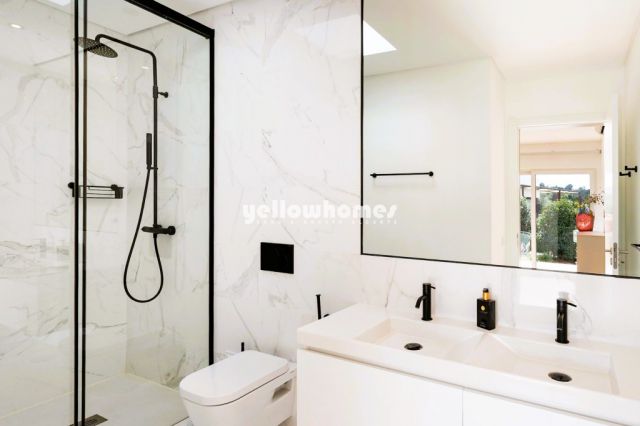 Diese komfortable, zeitgemäße Doppelhaushälfte liegt in einer brandneuen Ferienanlage in Sesmarias, Carvoeiro – zwischen den Orten Carvoeiro und Ferragudo gelegen. Die elegant ausgestattete, offene Küche geht fließend in den Wohnbereich über; große Panoramafenster lassen viel Tageslicht herein und eröffnen freie Blicke auf die Monchique-Berge und das umliegende Grün. Die Master-Suite verfügt über einen Einbauschrank und ein en-suite-Badezimmer. Zwei weitere Zimmer lassen sich flexibel als Büro, TV-Zimmer oder zusätzliches Schlafzimmer nutzen und werden von einem zweiten Familienbad bedient. Für Komfort sorgen elektrische Rollläden und Klimaanlagen zum Heizen, Kühlen und Entfeuchten. Im Außenbereich laden ein privater Garten, ein Swimmingpool und ein Grillbereich zum Entspannen und Bewirten ein. Das Haus wird komplett möbliert verkauft – sofort bezugsfertig als Feriendomizil für das ganze Jahr oder als schlüsselfertige Investition. Eigentümer in diesem wunderbaren Resort profitieren von exzellenten 24-Stunden-Service für Wartung, Gartenpflege und Sicherheit. Darüber hinaus gibt es die Resort Card mit Vergünstigungen in den Restaurants und Bars vor Ort sowie das Guest Card (PGC) Treueprogramm mit weiteren Vorteilen. Das Resort umfasst 45 Doppelhaushälften mit privaten Pools und 32 moderne T1+2-Apartments – alle so gestaltet, dass sie die Landschaft einbinden und unverbaute Ausblicke auf Monchique erhalten.