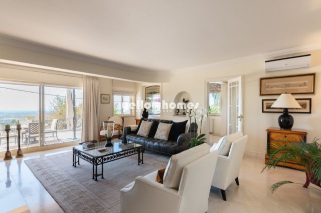 Nur selten begegnet man einer so eleganten und hervorragend gepflegten Immobilie. Diese außergewöhnliche Villa in den Hügeln von Santa Bárbara de Nexe besticht durch ihren klassischen Stil, ein separates Gästehaus im kolonialen Design sowie einen Swimmingpool, eingebettet in einen liebevoll angelegten, gepflegten Garten mit altem Baumbestand. Dieses Anwesen ist ein wahres Paradies mit einer einzigartigen Atmosphäre, die sich kaum in Bildern einfangen lässt. Der Ausblick vom Haus ist beeindruckend: Der Blick reicht bis nach Faro und entlang der gesamten Küstenlinie in westlicher Richtung – ein Garant für spektakuläre Sonnenuntergänge. Im Erdgeschoss des Haupthauses befindet sich eine großzügige Eingangshalle mit Gäste-WC, eine schöne große Küche mit Essbereich sowie ein Wohnzimmer mit Kamin und Zugang zur überdachten Südterrasse, die viel Tageslicht hereinlässt. Das Haus verfügt über eine gasbetriebene Zentralheizung mit Wandheizkörpern für angenehme Wärme im Winter sowie Klimaanlagen im gesamten Haus für Kühlung im Sommer und schnelles Heizen in der kühleren Jahreszeit. Ebenfalls im Erdgeschoss befinden sich zwei Gästezimmer mit jeweils eigenem Bad en suite. Zusätzlich gibt es einen „versteckten“ Hauswirtschaftsbereich mit direktem Zugang nach draußen. Eine geschwungene Treppe führt in das Obergeschoss, wo sich eine beeindruckende Master-Suite mit Bürobereich, Badezimmer, Ankleide und privater Terrasse befindet. Ein weiterer kleiner Raum auf dieser Etage eignet sich ideal als Babyzimmer oder zusätzlicher Ankleidebereich. Von hier aus sind die Ausblicke noch spektakulärer als vom Erdgeschoss. Im Untergeschoss befindet sich eine Garage. Rund um das Haupthaus erstreckt sich ein sehr privater Garten, teilweise mit Rasenflächen angelegt. Der Swimmingpool liegt zwischen dem Haupthaus und dem Gästehaus, direkt neben der Küche des Haupthauses, mit einfachem Zugang zu einer fantastischen Außenküche, ausgestattet mit BBQ und Arbeitsfläche. Das Gästehaus ist ein echtes Highlight: Mit seinem beeindruckenden Holzinterieur – Holzdach mit sichtbaren Balken, Holzfenstern und -türen – erinnert es an eine stilvolle Villa im Kolonialstil. Es bietet großzügigen Raum für Gäste: Im Erdgeschoss befindet sich ein offener Wohnbereich mit doppelter Raumhöhe und integrierter Küche sowie ein Duschbad. Der Schlafbereich liegt auf einer Galerie (Mezzanin), von der aus auch Zugang zu einer Terrasse besteht. Das Gästehaus verfügt zudem über eine eigene Garage, einen Carport sowie private Terrassen auf der West- und Südseite. Die Zufahrt ist mit portugiesischer Calçada gepflastert und mit einem elektrischen Tor gesichert. Eine wirklich besondere Immobilie, die man gesehen haben muss, um sie vollends zu schätzen. Energieausweis Klasse C.