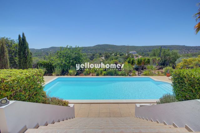 Diese attraktive, einstöckige Immobilie steht zum Verkauf und liegt in der Zentral Algarve auf einem weitläufigen Grundstück mit mehr als 7.000m² in einer ruhigen Umgebung und mit herrlichem Blick auf die Landschaft. Das 2002 erbaute Anwesen liegt nur eine kurze Autofahrt von der geschäftigen Marktstadt Loule und von Almancil entfernt und liegt somit in der Nähe einiger der besten Strände, Golfplätze und aller Annehmlichkeiten. Eine lange Einfahrt führt vom elektrischen Tor zum Eingang der Villa mit großem Parkplatz, oder zur großen Garage mit automatischem Tor. Die Villa hat alle Wohnbereiche auf einer Ebene, verfügt über eine Zentralheizung und besteht aus 4 Schlafzimmern mit eigenen Bädern, einem Gäste WC, einem sehr geräumigen und hellen Wonzimmer mit zentralem Kamin und hohen Decken. Das angrenzende Esszimmer hat eine schöne Ziegelkuppeldecke und Zugang zur großen, komplett möblierten und voll ausgestatteten Küche mit Frühstücksbereich. Alle diese Bereiche haben Zugang zu den umliegenden Terrassen und zum Garten. Ein paar Stufen hinab von der Terrasse befindet sich der 12x6 Meter große Pool mit Blick auf die wunderschöne Umgebung von Loule. Das Grundstück verfügt über einen weitläufigen, angelegten Garten mit Obstgarten, Rosengarten und anderen typischen Pflanzen der Algarve und bietet viel Privatsphäre und Platz. Diese gepflegte Villa ist die ideale Familienresidenz oder auch ein ruhiger Rückzugsort für Ihre Ferien. Die ideale Immobilie für diejenigen, die ein ruhige und sehr privates Anwesen suchen, das nur eine kurze Autofahrt von allen Annehmlichkeiten entfernt ist. Das Haus steht möbliert zum Kauf!
