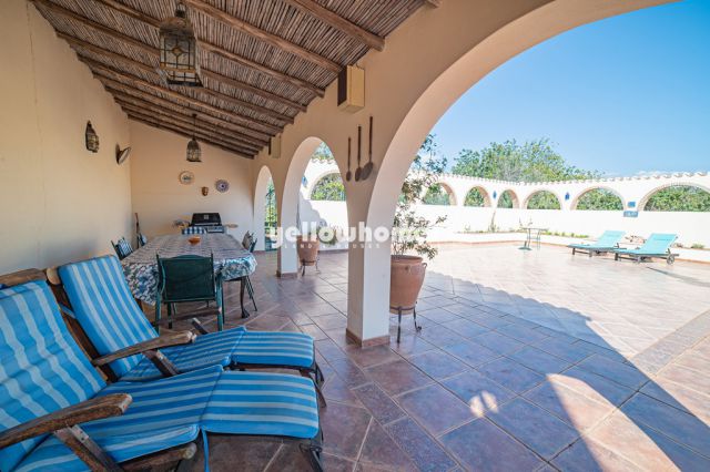 In der Nähe des malerischen Ortes Boliqueime und nur ca. 10 Autominuten von der Marina von Vilamoura, mehreren Golplätzen und den goldenen Stränden von Falesia entfernt, befindet sich diese gepflegte 4 -Schlafzimmervilla. Die nach Süden ausgerichtete 2-stöckige Immobilie wurde in 2001 erbaut und umfasst im Erdgeschoss eine Eingangshalle mit Gäste WC, ein großes Wohnzimmer mit offenem Kamin, ein gemütliches TV-Zimmer ebenfalls mit Kamin, 2 Schlafzimmer mit eigenen Bädern und Einbauschränken, sowie eine geräumige, komplett möblierte und ausgestattete Landhausküche mit Esstisch und angeschlossenem Abstellraum. Von hier gibt es ausserdem Zugang zur Garage. Über ein Treppe gelangt man zu einem offenen Bereich im ersten Stock der Villa der als Bürobereich genutzt werden kann und dem Hauptschlafzimmer mit geräumiger Ankleide, einem Badezimmer mit begehbarer Dusche. Ausserdem gibt es ein angrenzendes kleineres Schlafzimmer welches als Kinderzimmer genutzt werden kann. Technische Details: Doppelverglasung, Fensterläden, Wasserenthärter, Klimaanlagen und Gaszentralheizung. Wasser kann sowohl aus dem Stadtwasseraschluss als auch aus dem privaten Bohrloch bezogen werden. Schön angelegte Außenbereiche; es gibt überdachte und offene Terrassenflächen sowie einen offenen Innenhof mit Grillplatz, einen Salzwasserpool mit Abdeckung und einen kleinen Wasserfall. Der zum Teil natürlich belassene Garten bietet ein Fülle von verschiedenen Obstbäumen und ist einfach über ein elektrisches Eingangstor zu erreichen. Es gibt ausreichend Parkplätze und ein Carport. Das gesamte Haus ist wohldurchdacht und bietet sowohl im Sommer als auch im Winter viel Komfort!
