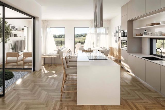 Diese elegante, eingeschossige Villa ist auf komfortables und müheloses Wohnen ausgelegt. Beim Betreten empfängt Sie ein heller Wintergarten, der die Innenräume mit viel Tageslicht durchflutet und einen angenehmen Blick auf den angelegten Garten bietet. Die voll ausgestattete Küche mit zentraler Kochinsel ist offen mit dem Wohnbereich gestaltet und schafft ein großzügiges, kommunikatives Ambiente. Von hier aus führen große Terrassentüren direkt in den Außen-Freizeitbereich mit Terrasse und Swimmingpool – ideal um den Algarve-Lebensstil in vollen Zügen zu genießen. Ein Familien Badezimmer (mit Fußbodenheizung) ergänzt den Wohnbereich, während der Hauswirtschaftsraum entweder über die Küche oder unabhängig von außen zugänglich ist. Die Master-Suite verfügt über einen begehbaren Kleiderschrank, ein großzügiges Bad en suite mit Doppelwaschtisch, Dusche, Badewanne sowie direkten Zugang zum Poolbereich, ebenfalls mit Fussbodenheizung. Die beiden weiteren Schlafzimmer sind mit Einbauschränken ausgestattet und teilen sich ein modernes Familienbad mit Dusche und Fußbodenheizung. Am Eingang des Grundstücks befindet sich ein überdachter Carport für ein Fahrzeug sowie ein praktischer, von außen zugänglicher Abstellraum. Die Lage innerhalb dieses renommierten Golfresorts an der Algarve bietet Eigentümern einen 24-Stunden-Service für Wartung, Gartenpflege und Sicherheit, der vom Bauträger gewährleistet wird. Zusätzlich profitieren Bewohner von einer Resort Card mit Vergünstigungen in ausgewählten Restaurants und Bars sowie vom Guest-Card-(PGC)-Treueprogramm mit zahlreichen exklusiven Vorteilen. Besichtigungen werden ausdrücklich empfohlen, um den Komfort, die Lage und die Qualität dieser außergewöhnlichen Immobilie vollständig zu würdigen.