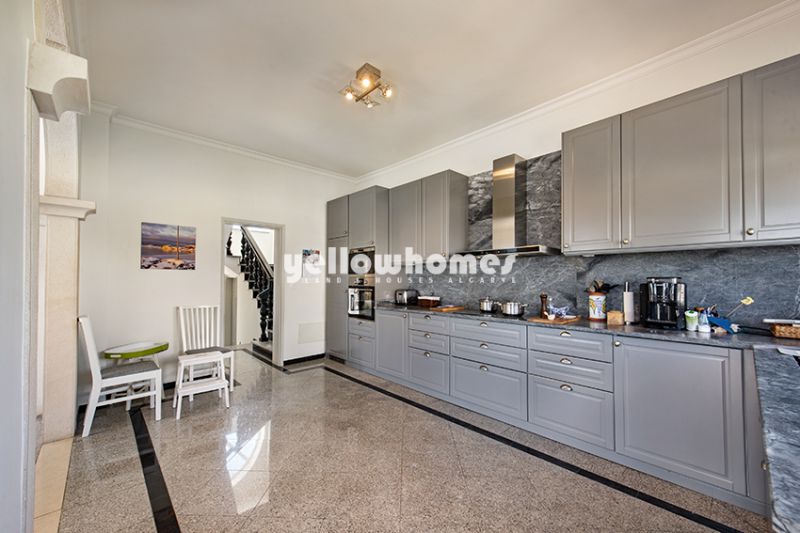 Luxuriöse Villa mit 3 Schlafzimmern in bevorzugter Lage mit beheiztem Pool, Garage und eingewachsenem Garten nahe dem Stadtzentrum von Tavira. Die Immobilie wurde 2017 vollständig nach höchsten Standards renoviert, unter Verwendung hochwertigster Materialien. Sie wurde auf den neuesten Stand gebracht und vereint Komfort, Funktionalität und Luxus bis ins kleinste Detail. Diese grosszügige Villa besteht aus einer Eingangshalle mit Gäste-WC, die in das grosse Wohnzimmer mit Holzofen und angrenzendem Esszimmer führt – beide mit Panoramablick und viel Tageslicht. Eine geräumige, voll ausgestattete Küche mit erstklassigen Geräten, ein Gästebad und ein Fernsehzimmer (auch als Gästezimmer genutzt) vervollständigen das Erdgeschoss. Von der Diele führt eine Granittreppe mit Marmorgeländer in das Obergeschoss, das zwei Doppelzimmer mit gemeinsamem Badezimmer (begehbare Dusche) sowie eine grosszügige Master-Suite umfasst – mit Whirlpool-Badewanne und Zugang zu einer grossen Terrasse (21 m2) mit Jacuzzi, von der man einen herrlichen Meerblick geniessen kann. Die Schlafzimmer verfügen über massgefertigte Einbauschränke aus Naturholz, die Böden sind aus hochwertigem deutschem Naturholz gefertigt. Im 2. Obergeschoss befindet sich ein Hauswirtschaftsraum und Zugang zur grossen Dachterrasse mit Panoramablick auf das Meer und die Berge. Zudem gibt es einen separaten Gästebereich mit Weinkeller und Badezimmer – ideal als Büro oder Spiel-/Freizeitraum. Vom Wohn-, Ess- und Küchenbereich gelangt man auf grosse, teils überdachte Terrassen mit einer speziell gestalteten Outdoor-Entertainment-Zone: Aussenküche mit BBQ, grosser Esstisch für das wichtige Leben unter freiem Himmel sowie ein beheizter Salzwasserpool mit Sonnenterrasse – perfekt für Sonnenliebhaber. Die Villa ist umgeben von einem angelegten, pflegeleichten Garten mit Natursteinwegen, von denen aus man die schöne Aussicht geniessen kann. Die Immobilie überzeugt durch hochwertige Bauweise und Verarbeitung, zusätzliche Dämmung, Doppelverglasung, Klimaanlage (Daikin) für Heizen und Kühlen, zentrales Staubsaugersystem, elektrische Rollläden, Fussbodenheizung in allen Bädern, wandhängende WCs, Granit- und Marmorböden, Satelliten-TV, Sicherheits- und Hausautomationssystem, Solarpaneele für Warmwasser, schnelles Internet (Glasfaser) und hohe Energieeffizienzklasse A.