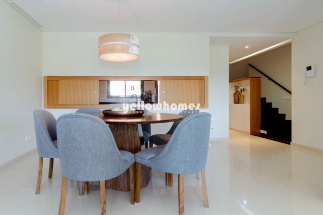 Dieses mediterane 3 Schlafzimmer Reihenaus mit fantastischer Austattung ist Teil einer exklusiven Wohnanlage in Vilamoura, eines der bekanntesten Wohn und Tourismusgebiete Europas. Dieses Reihenhaus ist direkt am Fairway gelegen und hat wunderschöne Terrassen mit traumhaftem Blick über den Golfplatz, teilweise bis zum Meer. Die Wohnräume sind großzügig gehalten und das Wohnzimmer mit Blick ins Grüne ist mit modernem Heizkamin ausgestattet. Die Küche ist voll eingerichtet und ausgestattet und hat eine Durchreiche zum Essraum. Im Erdgeschoss gibt es darüber hinaus noch ein Schlafzimmer und ein Badezimmer. Im Obergeschoss haben die beiden Suiten private Terrassen und und von der grossen Dachterasse mit Pergola hat mein einen sagenhaften Ausblick auf die Umgebung, den Golfplatz und das Meer. Es gib einen direkten Zugang vom Haus zu den zwei Autostellplätzen in der Tiefgarage. Dieses Eckreihenhaus zeichnet sich u.a. auch durch seine besondere Lage aus. 2 Golfplätze befinden sich in unmittelbarer Umgebung, die jährlichen Umlagen sind verhältnismässig gering und das Vermietungspotential ist sehr gross.