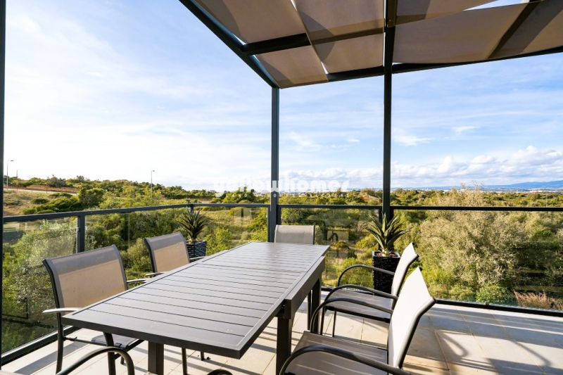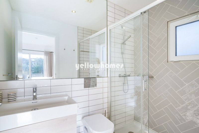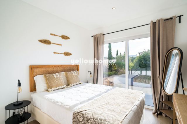 Diese beeindruckende, zeitgenössische Villa befindet sich in einem geschätzten Natur Resort nahe Carvoeiro, nur 2 km von der Küste entfernt. Hell, stilvoll und bestens proportioniert, überzeugt das Haus durch ein harmonisches Open-Space-Konzept: Eine elegante, voll ausgestattete Küche geht fließend in den Wohnbereich über, während großzügige bodentiefe Fenster den Raum mit natürlichem Licht erfüllen und den Blick auf eine faszinierende Aussicht freigeben, die Innen- und Außenwelt nahtlos miteinander verbindet. Die Master-Suite vereint Eleganz und Funktionalität mit Einbauschränken sowie einem modernen Bad mit italienischer Walk-in-Dusche. Zwei weitere vielseitig nutzbare Räume bieten flexible Möglichkeiten für Familienleben oder Homeoffice – ob als zusätzliche Schlafzimmer, Büro oder Freizeitbereich – und werden durch ein modernes Familienbad ergänzt. Ganzjähriger Komfort ist durch Klimaanlage, elektrische Rollläden und Doppelverglasung gewährleistet. Im Außenbereich wird die Villa zu einem privaten Rückzugsort: Ein schön angelegter Garten umgibt das Haus, ergänzt durch einen privaten Swimmingpool und einen separaten Barbecue-Bereich – ideal für entspannte Nachmittage und gesellige Abende im Freien. Die Immobilie wird vollständig möbliert verkauft und eignet sich hervorragend als ganzjähriges Feriendomizil, als „Lock-up-and-leave“-Wohnsitz oder als attraktive Investition. Das Nature Resort ist eine touristische Anlage in idealer Lage zwischen Carvoeiro und Ferragudo und bietet Villen mit privaten Pools sowie Apartments, die so konzipiert sind, dass sie die Landschaft optimal einbeziehen – mit freien Blicken Richtung Monchique-Gebirge. Eigentümer profitieren zudem von professionellen 24-Stunden-Resortservices, einschließlich Instandhaltung, Gartenpflege und Sicherheitsdienst.