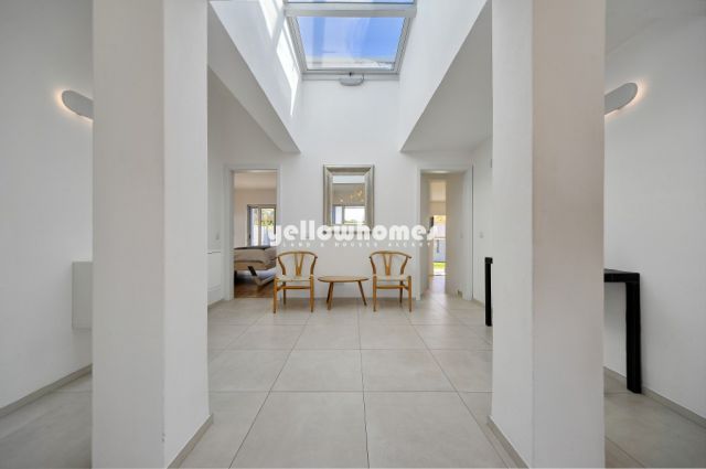 Diese attraktive eingeschossige Immobilie in gehobener Qualität steht komplett neu möbliert zum Kauf und liegt in bevorzugter Wohnlage an der Zentral Algarve in fussläufiger Nähe zu Stränden und Annehmlichkeiten.Diese Villa bietet alles, was man sich für eine Immobilie im sonnigen Süden wünschen kann. Hervorragende Zufahrt, vom elektrischen Tor gelangt man zur gepflasterten Einfahrt mit ausreichend Parkplätzen. Die durchweg helle Villa verfügt über einen Eingangsbereich mit Einbauschränken, schönem Oberlicht und Gäste WC. Von hier sind alle 3 Schlafzimmer zugänglich, jedes der hellen SZ hat ein eigenes modernes und voll ausgestattetes Bad, Klimaanlage, Einbauschränke / Ankleidezimmer und Zugang zu den umliegenden Terrassen und zum Garten. Die moderne Küche besticht mit einer Granitarbeitsplatte, ist komplett neu möbliert und ausgestattet. Zudem gibt es einen separaten Ausgang und einen Frühstücksbereich. Das helle, offen gehaltene Wohn- und Esszimmer beeindruckt mit großen Fensterflächen, die den Blick zu den großzügigen Terrassen und dem Poolbereich freigeben. Hier lädt eine Sommerküche mit Grill und gemütlichem Sitzbereich zu Mahlzeiten im Freien ein. Auf den weitläufigen nach Südwesten ausgerichteten Terrassen mit dem großen privaten Pool können Sie bis zum Abend die Sonne genießen, verschiedene Pergolen bieten individuellen Schatten. Unterhalb des Pools bietet ein separates Studio-Appartment zusätzlichen Platz für Gäste, dieses besteht aus einem kombinierten Wohn- und Schlafzimmer, einer möblierten und voll ausgestatteten modernen Küchenzeile mit Frühstückstisch, einem modernen Badezimmer und einer privaten Sonnenterrasse mit Pergola. Hier befindet sich auch ein Technikraum/ Hauswirtschaftraum. Genießen Sie von der Dachterrasse einen schönen Blick auf die Umgebung, den Sonnenuntergang oder spazieren Sie zum nahe gelegenen Strand oder Restaurant. Diese einzigartige und hochwertige Immobilie verfügt über einen pflegeleichten Garten und ist eine seltene Gelegenheit, eine Immobilie im Grünen in der Nähe aller Annehmlichkeiten an der Algarve zu erwerben. Die moderne und neuwertige Möblierung ist im Kaufpreis mit enthalten! Kontaktieren Sie uns!