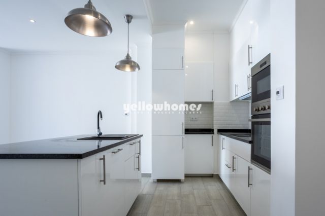 Mitten im historischen Zentrum der traditionsreichen Marktstadt Loulé erwartet Sie diese stilvoll modernisierte Wohnung , ein perfekter Rückzugsort für alle, die urbanes Flair und authentisches Portugal schätzen. Die lebendige Stadt im Herzen der Zentralalgarve ist bekannt für ihre pittoresken Gassen, die farbenfrohe Markthalle und ein ganzjährig pulsierendes Kulturleben. Die Wohnung überzeugt mit einem großzügigen Wohn- und Essbereich, in den sich eine moderne, offene Küche harmonisch einfügt. Bodentiefe Fenster öffnen sich zu einer sonnigen Terrasse und lassen viel Licht in den Raum. Zwei komfortable Schlafzimmer, jeweils mit Einbauschränken und eigenem Bad mit begehbarer Dusche, bieten Privatsphäre und Komfort. Ein praktischer Abstellraum unter der Treppe sorgt für zusätzlichen Stauraum. Dank der einmaligen Lage, nur wenige Schritte von der berühmten Markthalle und allen Geschäften, Cafés und Restaurants entfernt eignet sich dieses Apartment sowohl als elegantes Feriendomizil wie auch als fester Wohnsitz. Die Strände und Golfplätze der Küste erreichen Sie in wenigen Autominuten.